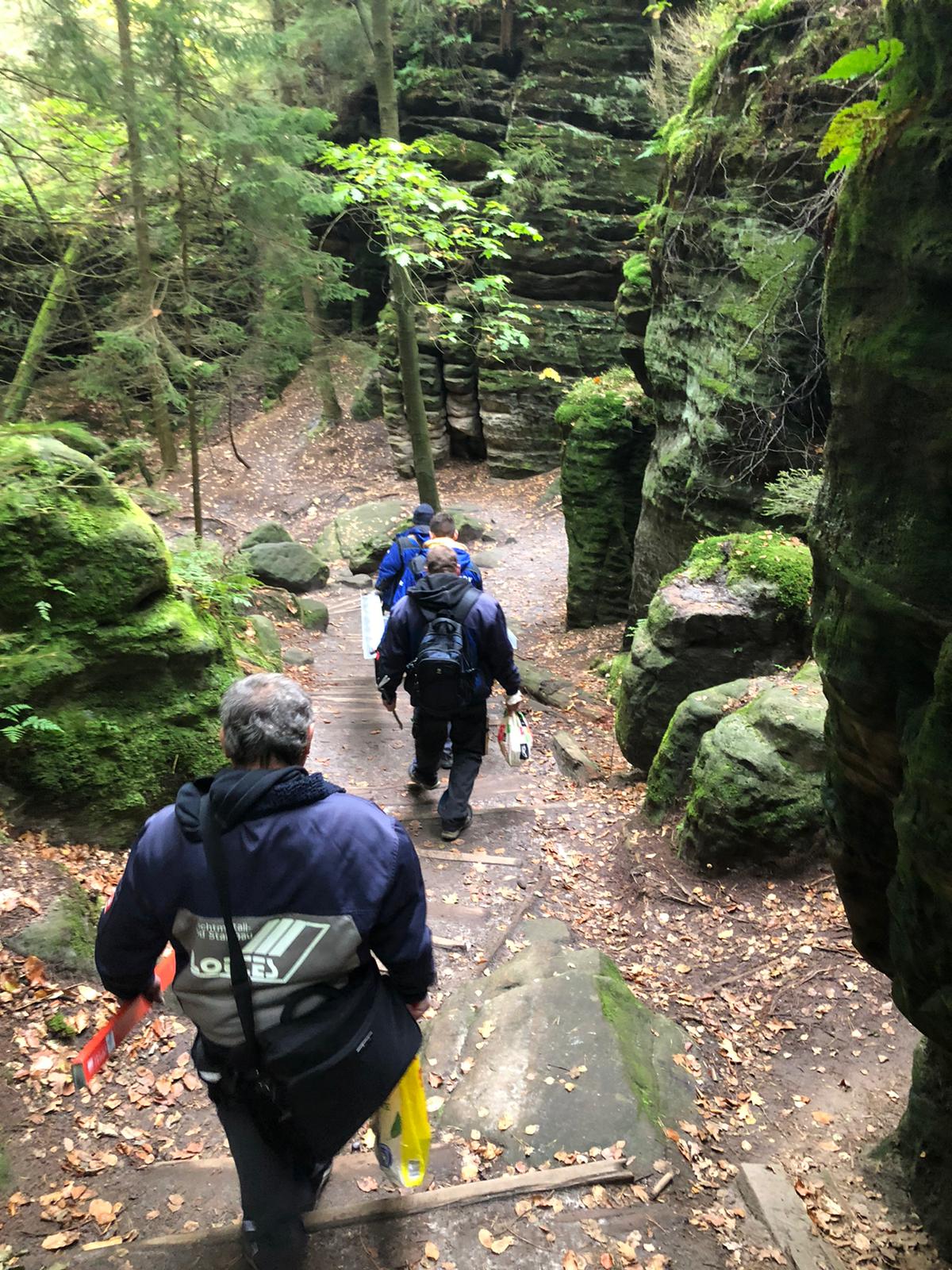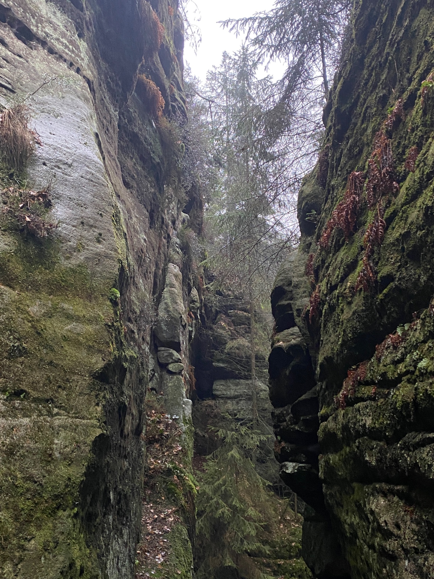 nur einzelene StaDie tief eingeschnittene, knapp einen Kilometer lange Schlucht entstand durch die Erosion des weicheren Sandsteines. Sie folgt in ihrem Verlauf der Hauptkluftrichtung im Elbsandstein.