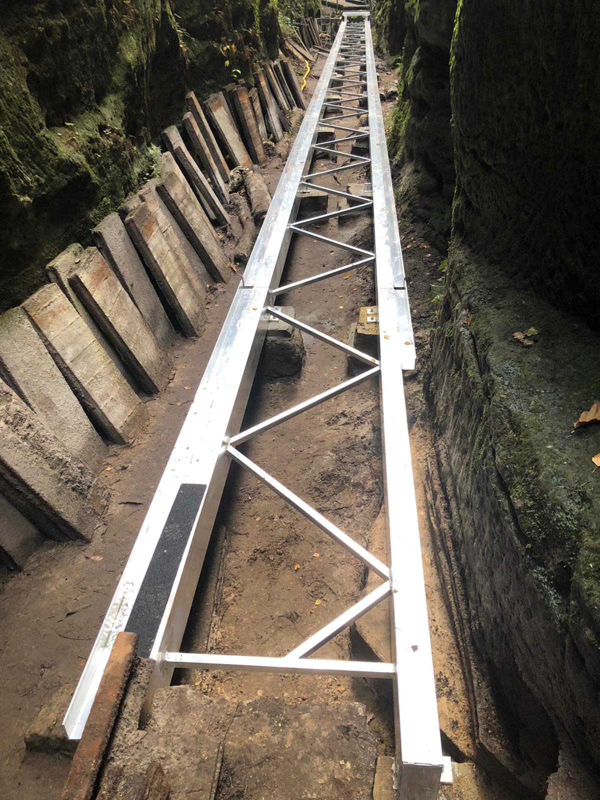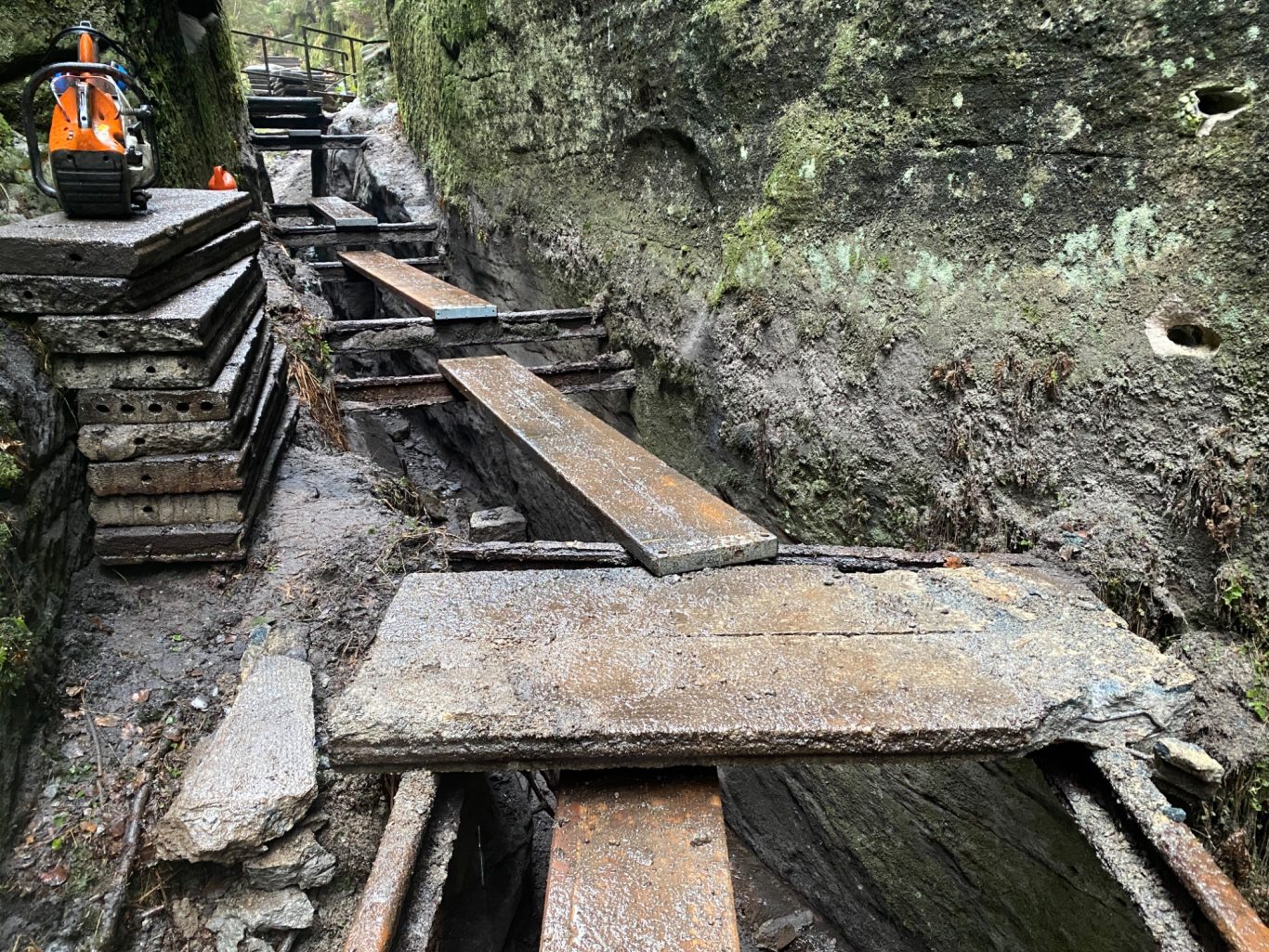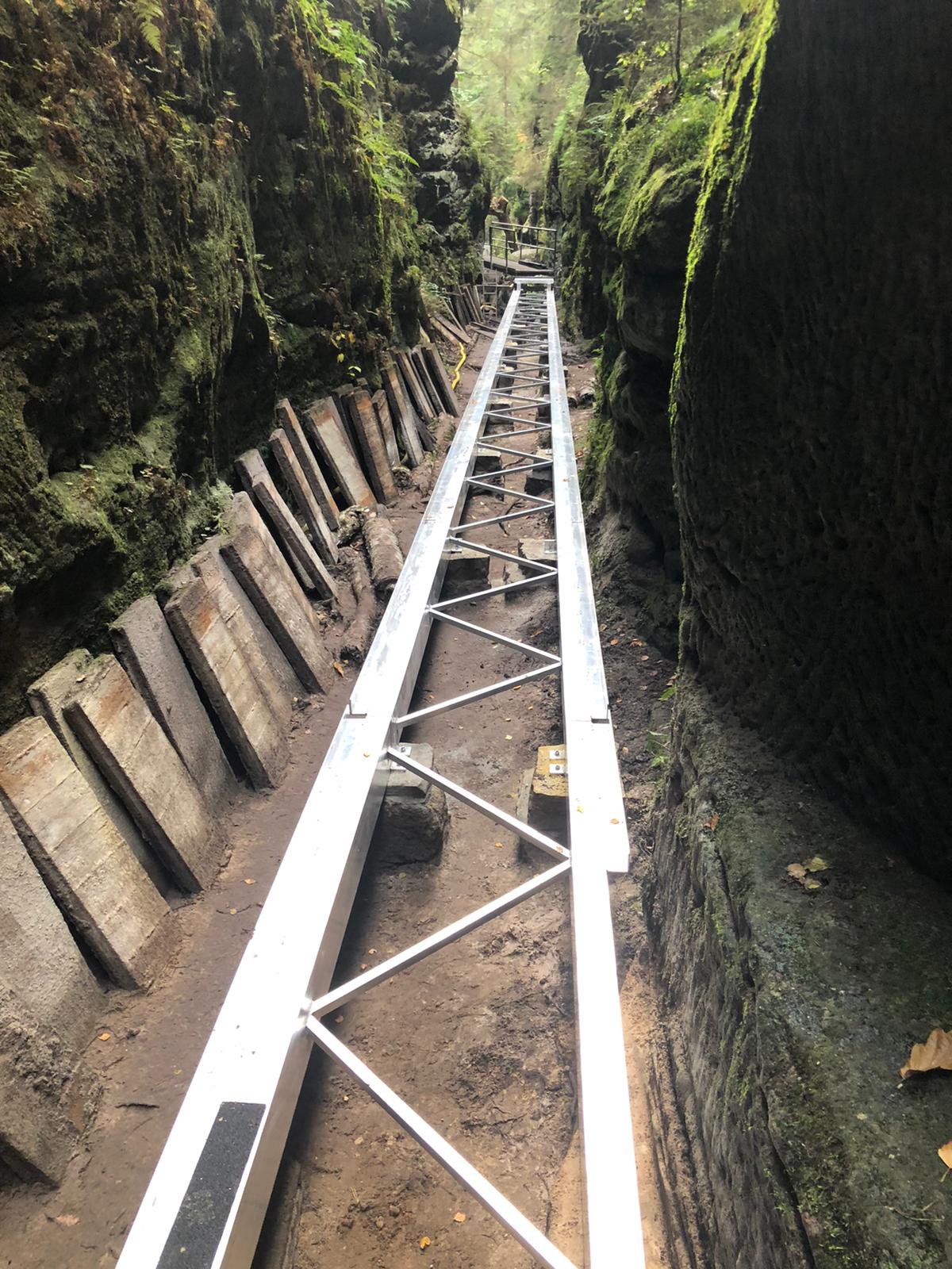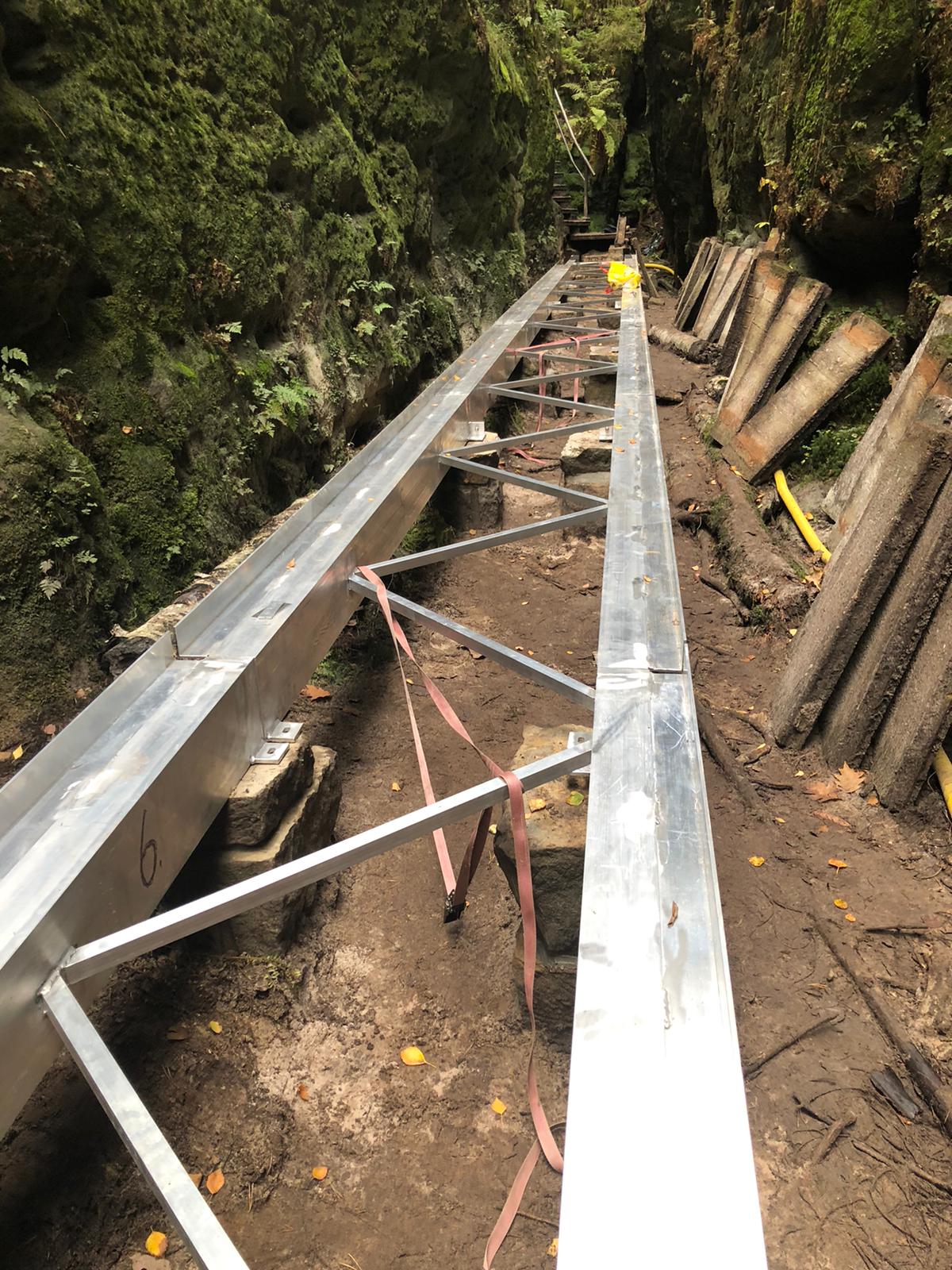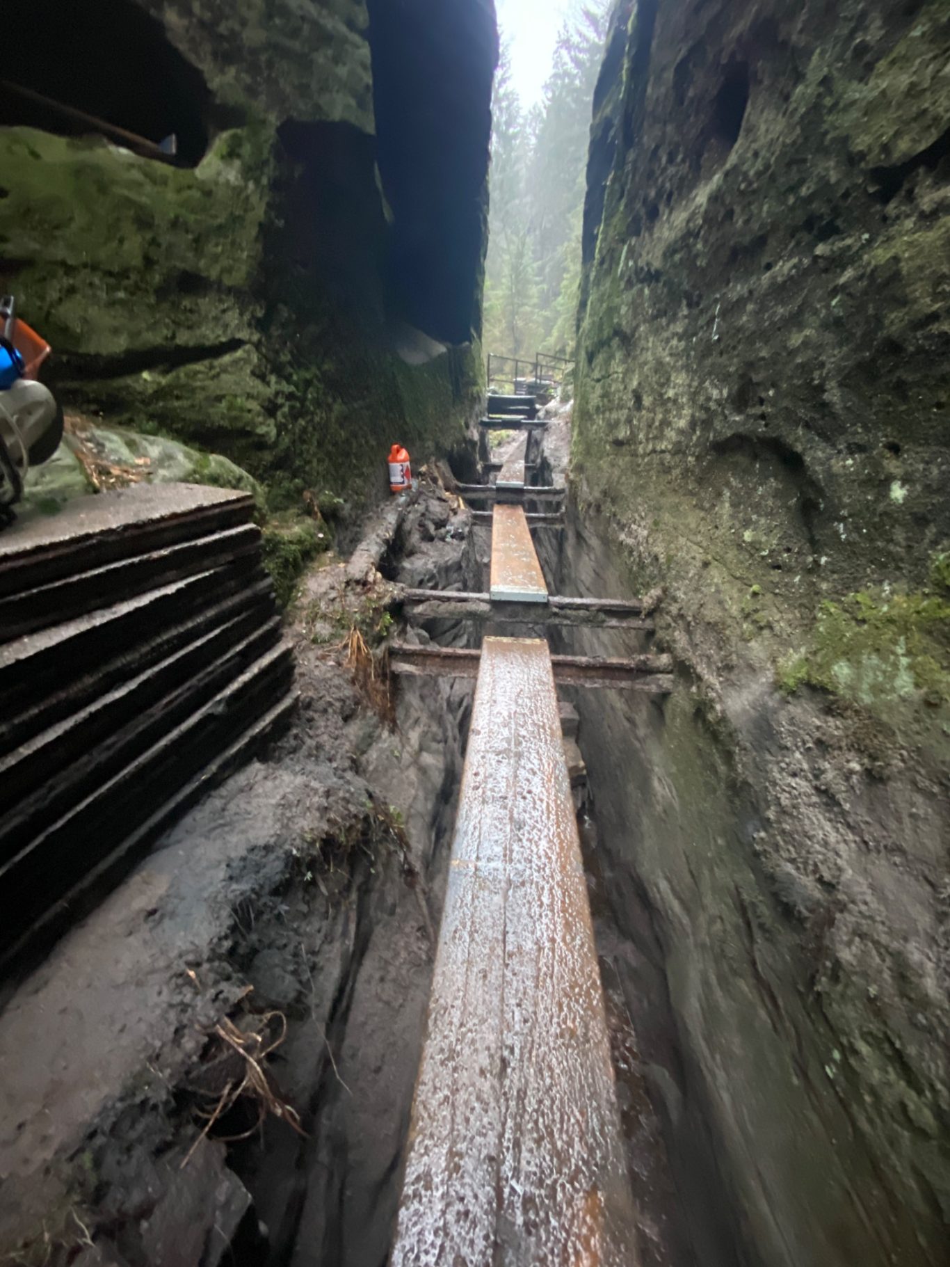 Bei Wind und Wetter mussten Tonnen an Stahl, Steinen und Arbeitsmitteln bis tief in die Schluchten oder über tiefe Abgründe bewegt werden. Durch das Natiurschutzgebiet war der Einsatz von schweren Hilfsmitteln untersagt. Eine Zerreißprobe für alle Beteiligten. Der Wanderweg durch die Schwedenlöcher ist jedes Jahr hoch frequentiert.