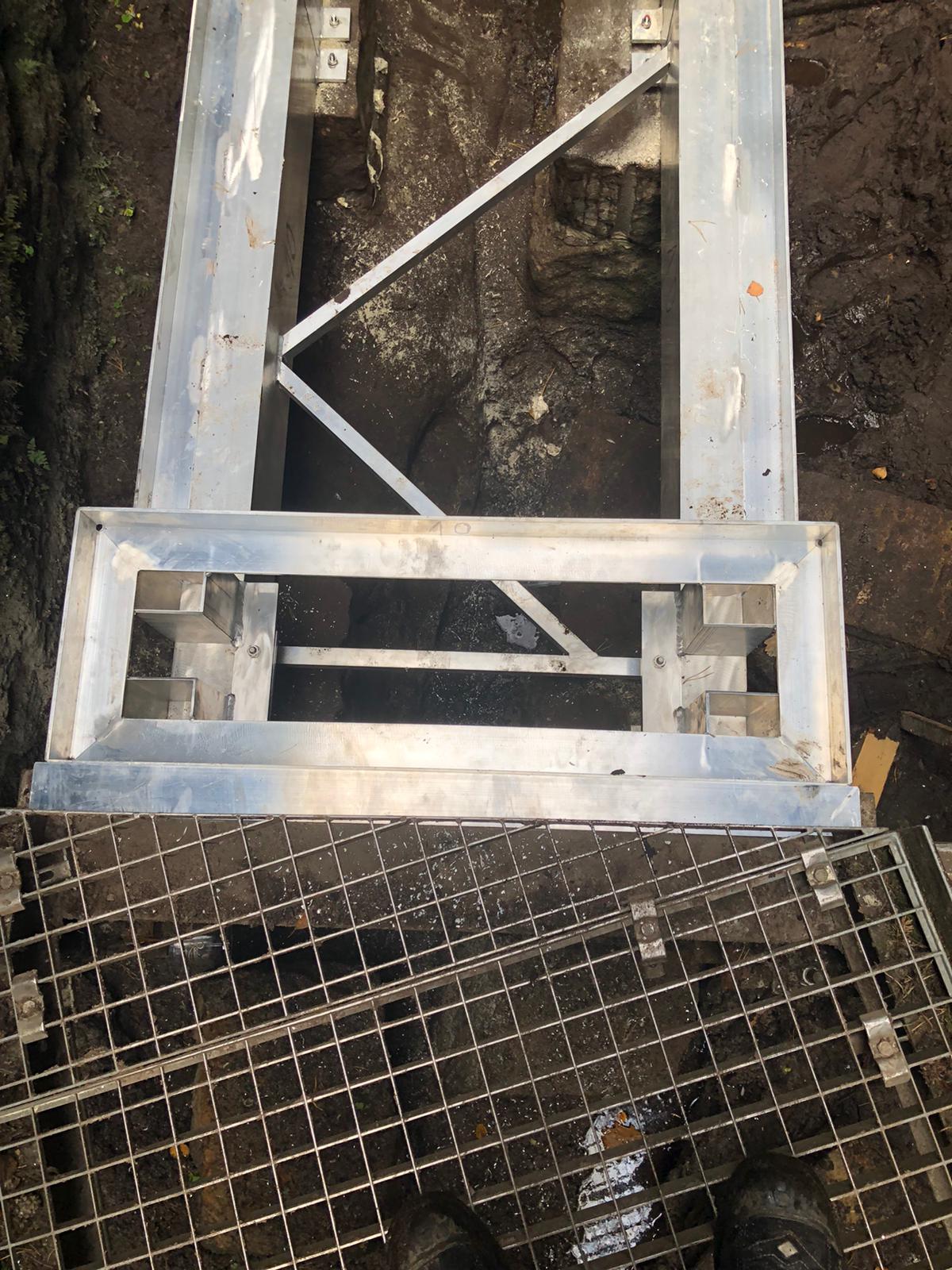 Für ein Klärwerk der Firma Müllermilch wurde eine neue Arbeitsbühne benötigt. Während des Betriebes wurden die vorgefertigten Stahlbühnen durch Kraneinsatz und Industriekörbe montiert.