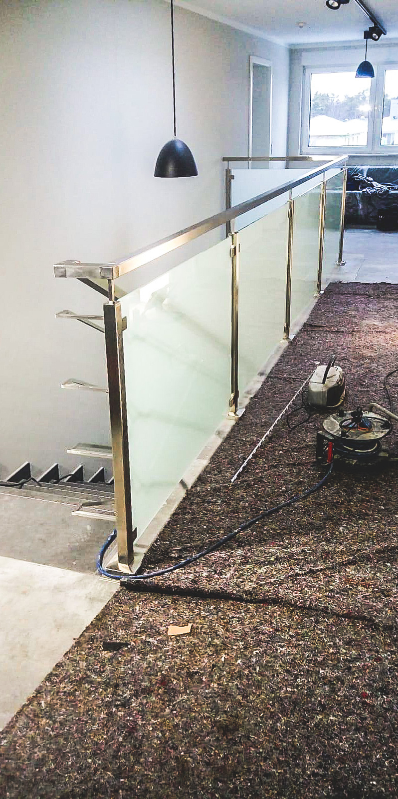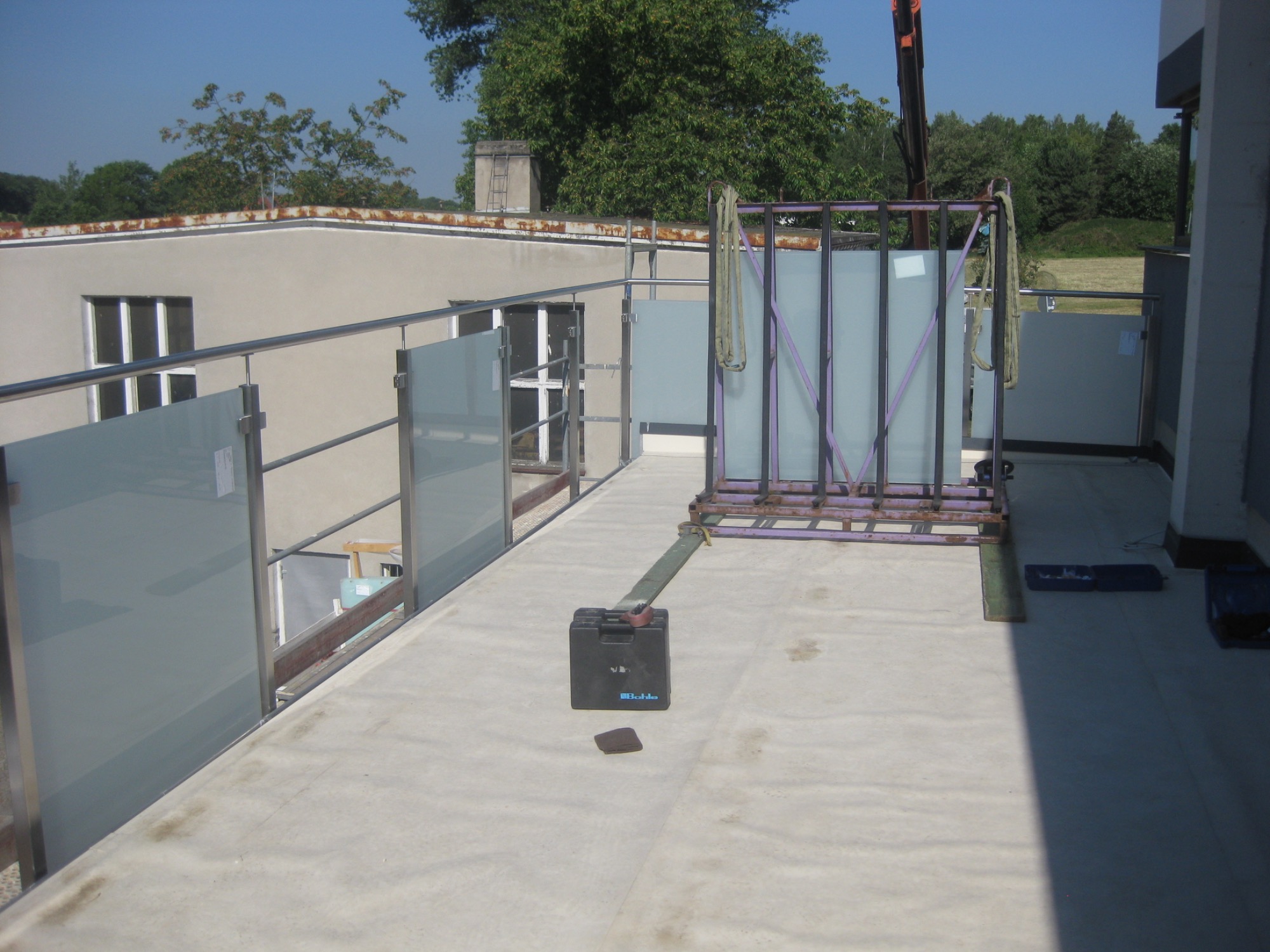 - Stahl Milchglas Geländer