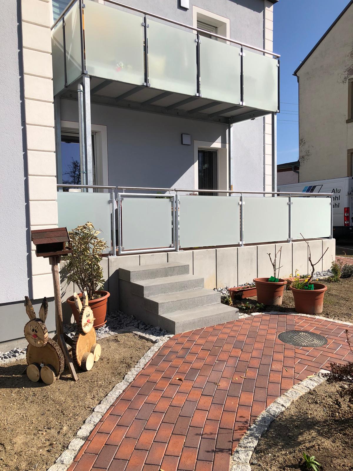 - Edelstahlgeländer Milchglas